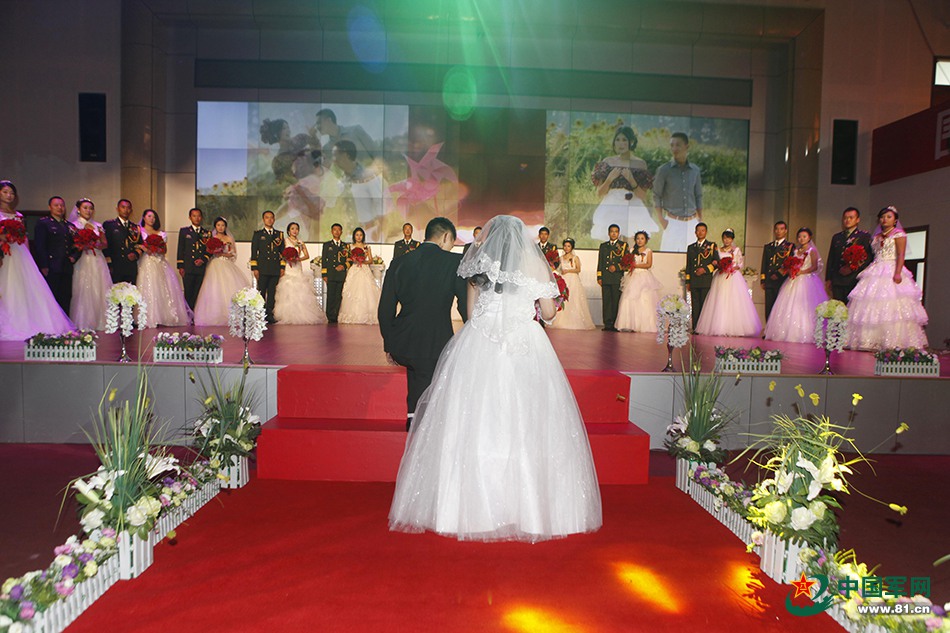 A special group wedding was held in Heihe, northeast China’s Heilongjiang province for 14 military soldiers on Aug. 1, 2015. Most of these soldiers spent their time on the frontier, in the woods, or on naval vessels, so they rarely have the time to keep their lovers company. The group wedding served as a platform for the soldiers' life partners to understand the importance of their jobs and cherish the hard-earned happiness.