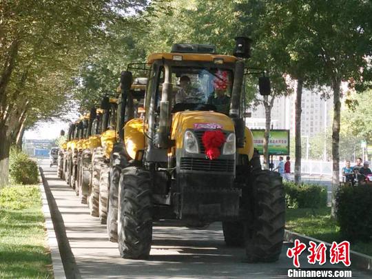 Twelve brand new high-powered tractors lined up in front of a hotel where a wedding ceremony is about to start. Li Lei, 25 chose the less-than-ordinary wedding carriage to take his bride from her home. In 2013, Li set up his own tractor business in Xinjiang, his hometown after his graduation from college.