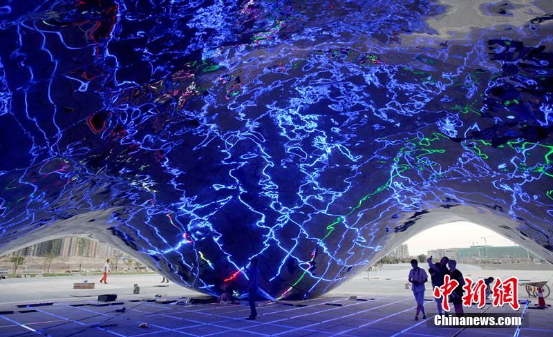 The gorgeous light effect at the bottom of the “big oil bubble”. (Photo by China News Agency/ Zhou Jianling)