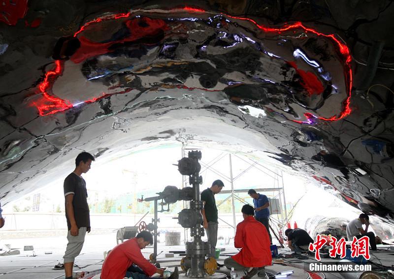 | Workers are in the process of construction at the bottom of the “big oil bubble”. (Photo by China News Agency/ Zhou Jianling) |