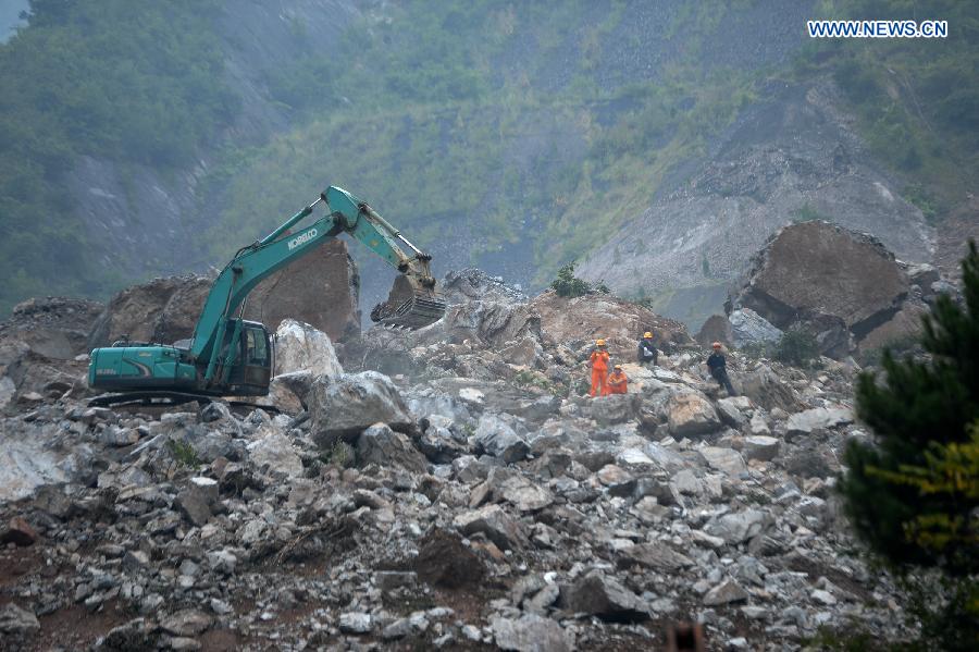 The landslide, which occurred at around 12:30 am on Wednesday, brought 1 million cubic meters of earth that buried five dorms and three houses at the Wuzhou mining company in Shanyang County.