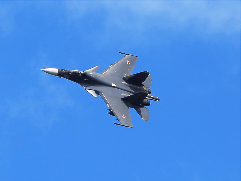 Photo shows the Russian aerobatics team performing in the Aviadarts in Russian 2015 Int'l Army Games on Aug. 10, 2015. (Photo/provided to China.org)