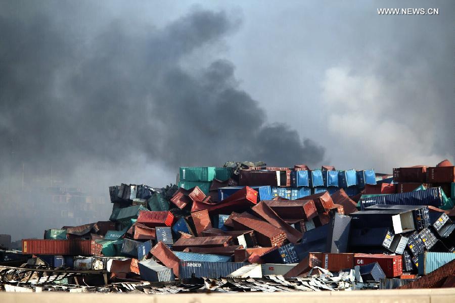 | Photo taken on Aug. 13, 2015 shows heavy smoke at the core area of the explosion site in Tianjin, north China. The death toll from the warehouse explosions in Tianjin city rose to 50 Thursday evening while 701 others were admitted to hospitals, rescue headquarters said. (Xinhua/Cai Yang) |