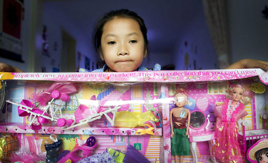 Every time people visit the family, Little Wang Han always shows her Barbie doll to the guests, which was given by her father.