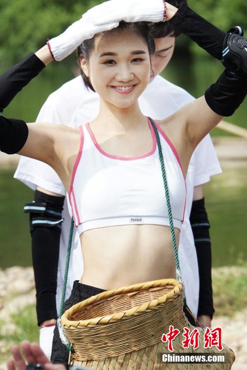 Contestants from 10 Asian countries taking part in the final of Asian Super Model Contest attend an interesting “fish catching contest” in Guilin, south China’s Guangxi on Aug. 12, 2015. (CNS/Luo Wengang)