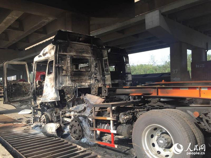 Photo taken at 8 a.m. Thursday morning shows an exposition site in the Binhai New Area in north China's Tianjin municipality, Aug. 13, 2015. (Photo/People's Daily Online)