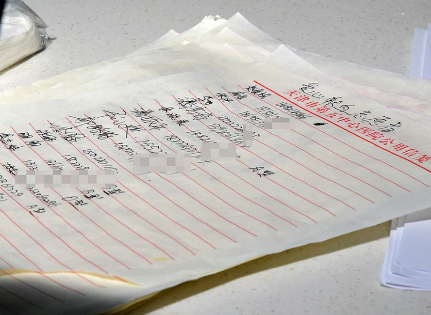 The list of the people who rush to a hospital for donating blood on Aug. 13, 2015. (Photo/Xinhua)