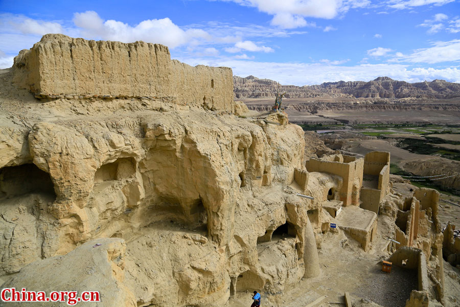The Guge Kingdom ruins lie in the mountains in the suburbs of Zanda County, Ngari Prefecture, Tibet Autonomous Region. Guge was an ancient kingdom reigning in western Tibet from the 10th century to 17th century. The kingdom abruptly disappeared in the 17th century, for a reason that remains unknown. The ruins of the Guge Kingdom were discovered in the 1980s, along with its marvelous temples, murals and statues. The ruins were repaired from 2011 to 2014. [Photo by Zhang Lulu/China.org.cn]