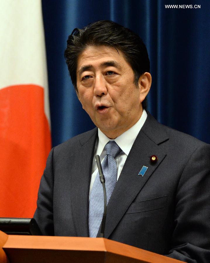 Japanese Prime Minister Shinzo Abe speaks during a news conference in Tokyo, Aug. 14, 2015. In a statement on Friday marking the 70th anniversary of the end of World War II, Abe mentioned previous governments' apology for Japan's wartime past, but refrained from offering his own apology. He also said that Japan must not let its future generations "be predestined to apologize." (Xinhua/Ma Ping)