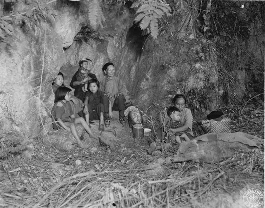 Chinese people hide in a small cave to avoid bombing. (Photo/Chinadaily.com.cn)