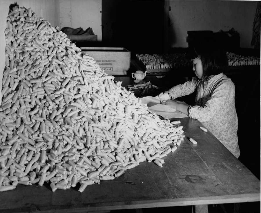 A girl puts explosive powder into a bag. (Photo/Chinadaily.com.cn)