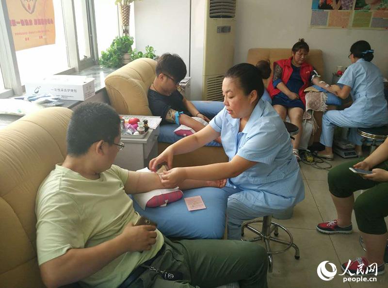 People donate blood in a hospital. (Photo/People’s Daily Online)