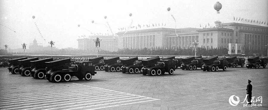 Artilleries displayed in the 1984 parade. (Qiao Tianfu/People.cn)
