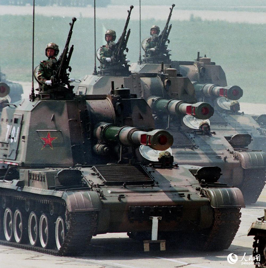 Artilleries displayed in the 1999 parade. (Qiao Tianfu/People.cn)