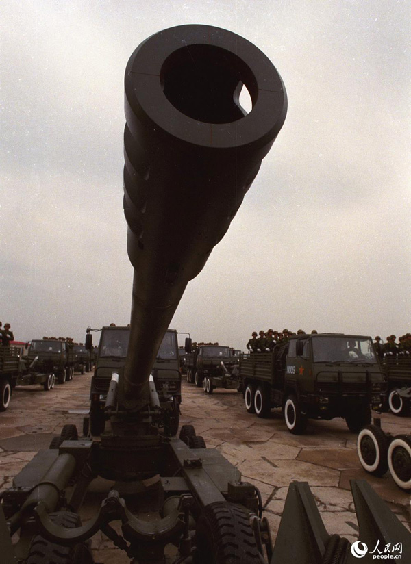 Artilleries displayed in the 1999 parade. (Qiao Tianfu/People.cn)