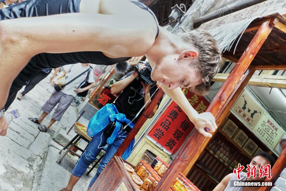Some contestants of the final of Asian Super Model Contest can't help crying after trying the hot fresh chili, a specialty in Guilin, south China’s Guangxi, on Aug. 13, 2015. (Photo/CNS)