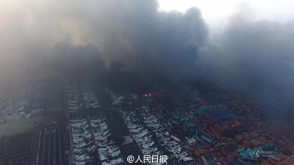 The pictures taken by People’s Daily on Friday shows firefighters were still trying to put out fires in Tianjin Blasts site. By 2:15pm Beijing time, there were still fires with smoke and smells.