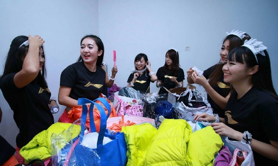 | About 20 girls crowd in a small change room, getting ready before performing on the court. (Photo/Youth.cn) |
