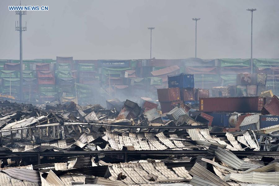 Photo taken on Aug. 17, 2015 shows the warehouse explosion site in Tianjin. Death toll of the massive Tianjin blasts rose to 114 after rescuers found two more bodies in the debris, a municipal publicity official said on Monday. (Xinhua/Yue Yuewei)