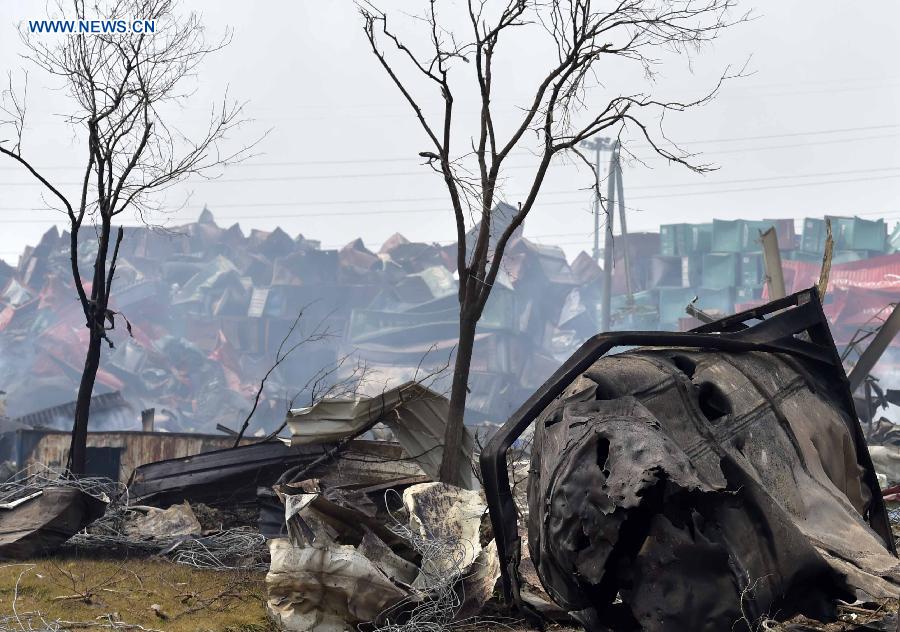 Photo taken on Aug. 17, 2015 shows the warehouse explosion site in Tianjin. Death toll of the massive Tianjin blasts rose to 114 after rescuers found two more bodies in the debris, a municipal publicity official said on Monday. (Xinhua/Yue Yuewei)