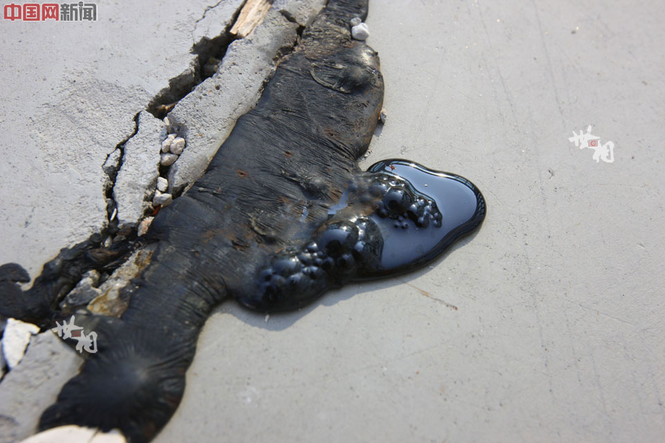 Asphalt on the top terrace is melting because of the heat. (China.com.cn/Zhang Peijian)