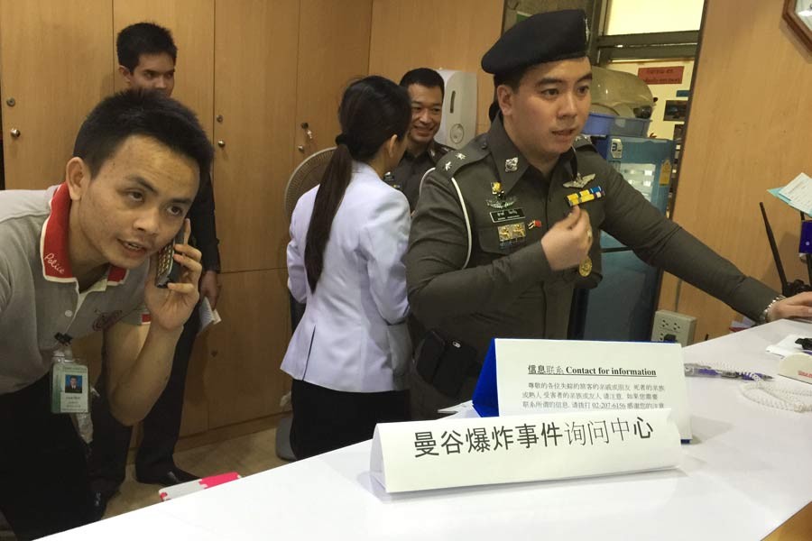 | At least 20 people killed in the blast near Erawan Shrine in ?Bangkok Monday night and 125 people were injured and sought medical help, a police spokesman on Tuesday morning revised the death toll and said that earlier reports of 22 deaths was because of confusion over identifying body parts.There are 4 Chinese among the dead, 2 from the mainland and 2 from Hong Kong, Chinese embassy in Thailand confirmed on Tuesday morning. (photo by Tianle Wang, Yichun Yu / People's Daily Bangkok Bureau) |
