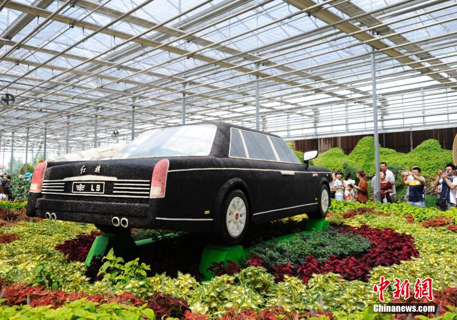 A life size Hongqi car made by millions of various kinds of beans attracts visitors to take photos. (Xinhua / Zhang Yao)