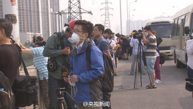 Domestic and foreign media organizations enter core area of Tianjin blasts (5)