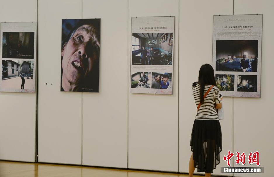 Visitor looks at pictures of South Korean comfort women, Aug. 18, 2015. (Photo/Xinhua)