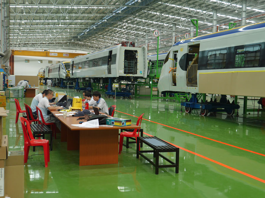 Production line of China CSR Malaysia Rail Transit Equipment Company.(People's Daily/Ding Zi)