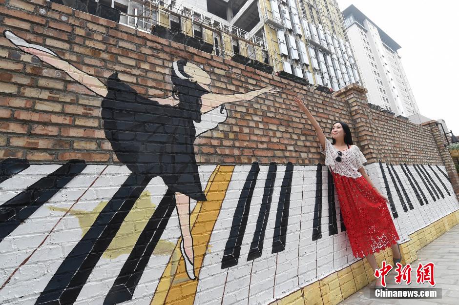Graffiti enthusiasts paint on a 200-meter wall in Taiyuan, north China’s Shanxi province on Aug. 18, 2015. (CNS/Wu Junjie)
