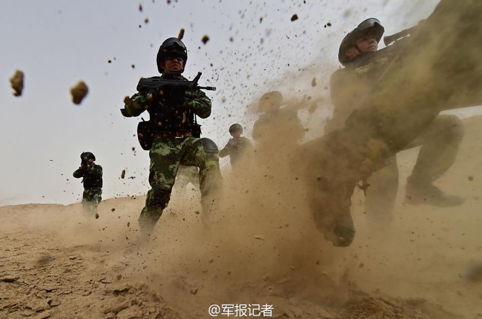 Soldiers of Xinjiang Armed Police Corps conduct training on sandy days (2)