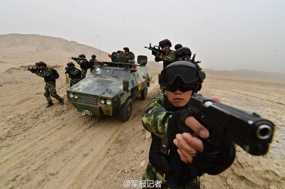 Soldiers of Xinjiang Armed Police Corps conduct training on sandy days (3)
