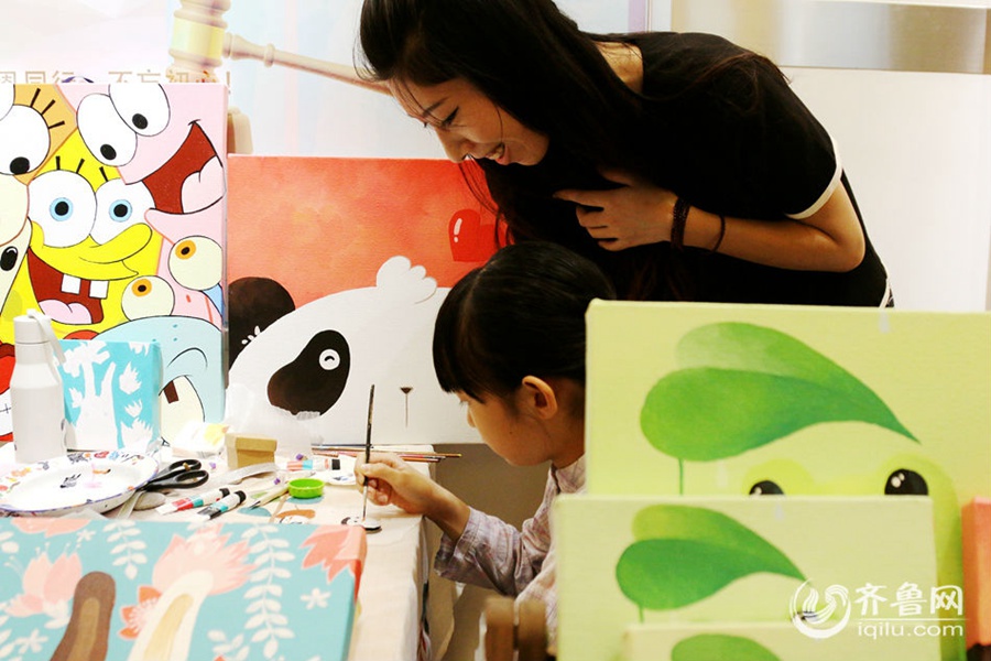 Tutu teaches the kid to draw. (Iqilu.com/Bai Shaoguang)