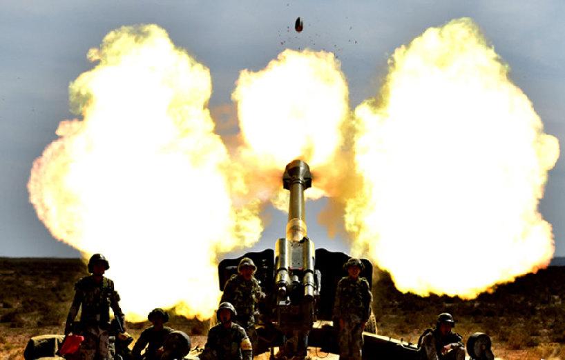 Soldiers fire a truck-mounted rocket launcher to strike the simulated enemy during the "Firepower-2015 Qingtongxia D" trans-Military Area Command (MAC) live-fire military exercises. Troops from a regiment under the 21st Group Army of the PLA Lanzhou MAC and an artillery brigade under the 16th Group Army of the PLA Shenyang MAC participated in the exercises in a training ground of the Lanzhou MAC on the afternoon of Aug. 16, 2015. (Photo/ China Military Online)