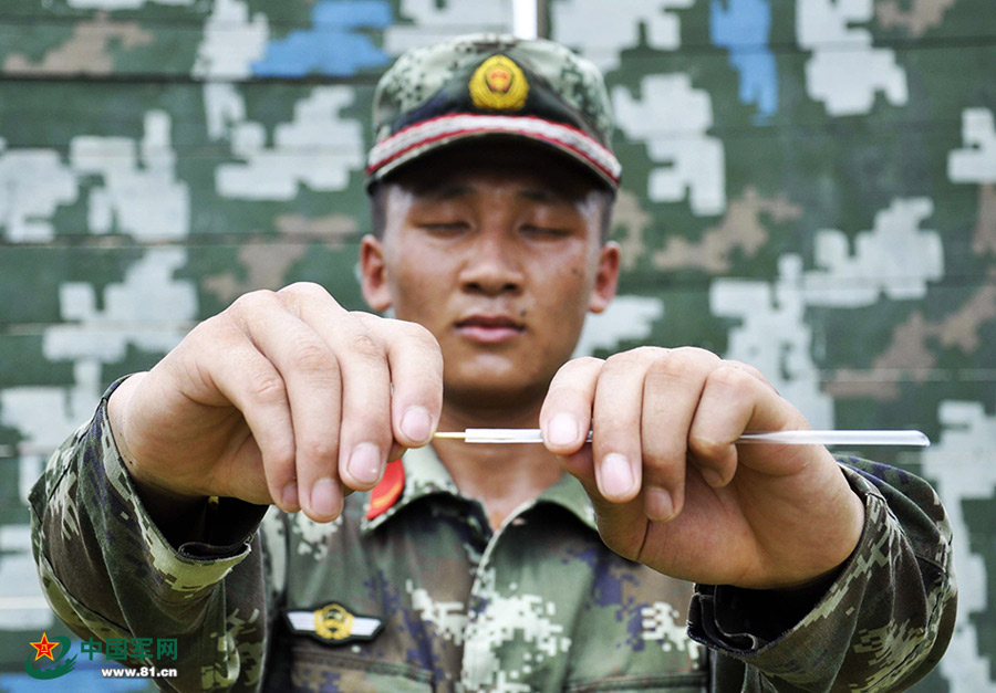 Nanning Armed Police Detachment begins to conduct a one-week special training for snipers on Aug. 15, 2015, so as to improve their sniping skills and psychological qualities. (Photo/www.81.cn)