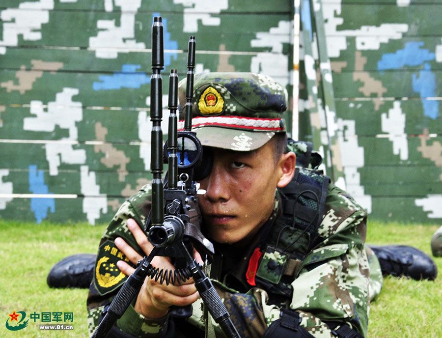 | Nanning Armed Police Detachment begins to conduct a one-week special training for snipers on Aug. 15, 2015, so as to improve their sniping skills and psychological qualities. (Photo/www.81.cn) |