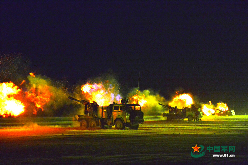 A regiment of PLA Lanzhou Military Region conducts live-fire drill near the foot of Mount Tianshan. Thousands of shells were fired during the 30-hour drill. (81.cn/Dong Hao)