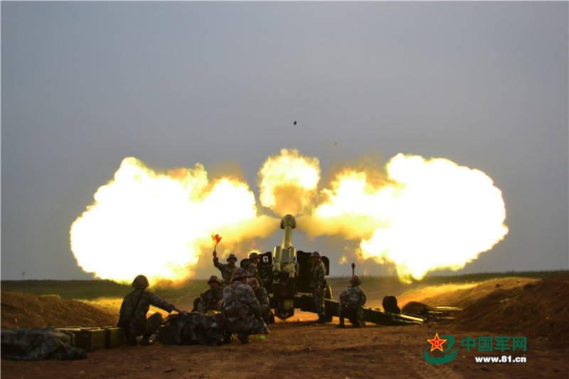 A regiment of PLA Lanzhou Military Region conducts live-fire drill near the foot of Mount Tianshan. Thousands of shells were fired during the 30-hour drill. (81.cn/Dong Hao)