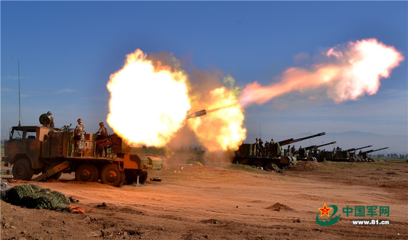 A regiment of PLA Lanzhou Military Region conducts live-fire drill near the foot of Mount Tianshan. Thousands of shells were fired during the 30-hour drill. (81.cn/Dong Hao)
