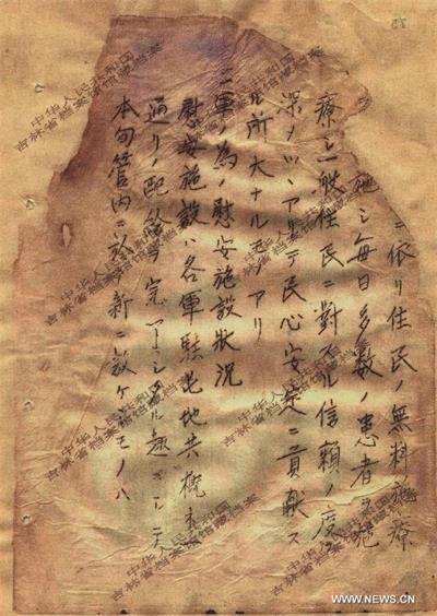 Photo released on Aug. 16, 2015 by the State Archives Administration of China shows a Japanese military report in 1938 on enslavement of comfort women. A series of historical reports and personal letters, published by China's State Archives Administration on Sunday, has presented new evidence about the Imperial Japanese Army's war crimes in enslavement of "comfort women." (Xinhua)