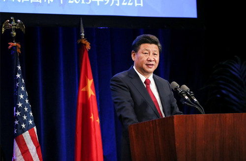 President Xi Jinping delivers a speech during a welcome banquet jointly hosted by Washington State government and friendly communities in Seattle, the United States, Sept 22, 2015. (Xinhua/Photo)