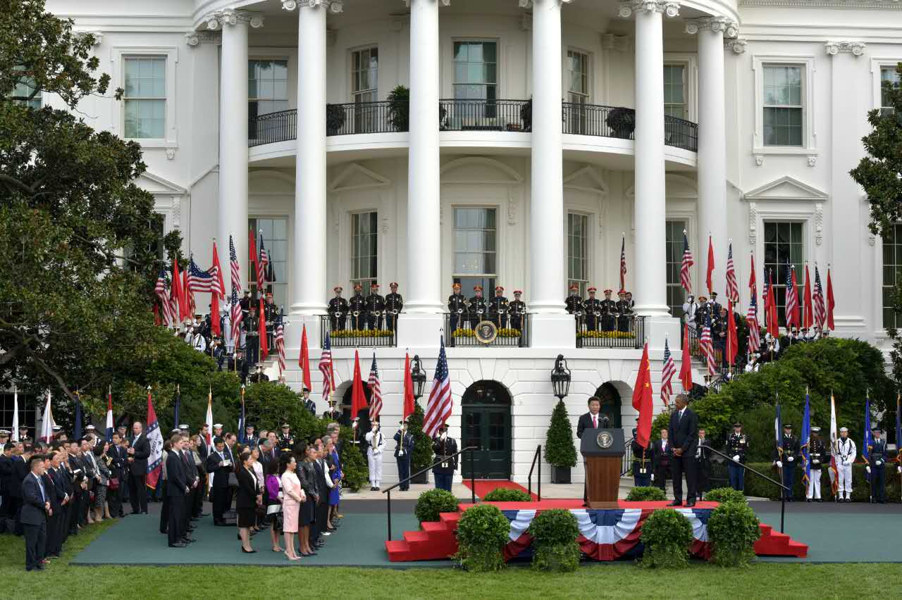 Chinese President Xi Jinping delivers a speech at White House in Washington D.C. on September 25, 2015 during his first State Visit to the U.S. (Photo by Wen Xian)