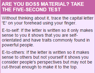 American professors Adam Galinsky and Maurice Schweitzer have devised the five-second 'E' trick, which they believe separates those who are boss material from those who aren't.