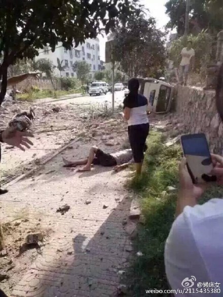Photo taken on Sept. 30, 2015 shows the accident site after explosions took place in Liucheng County, south China's Guangxi Zhuang Autonomous Region. Three people have been confirmed dead and 13 others were injured in the blasts occurred at the seat of Liucheng county and the surrounding areas, with the first one heard at about 15:50. (Xinhua)
