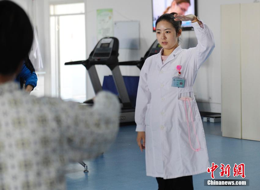 Besides dancing and yoga, Zheng also teaches patients some sign language. (Chinanews/Zhang Yao)