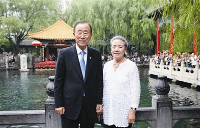 Secretary-General of the United Nations Ban Ki-moon and his wife in Shandong. (Photo/workercn.cn)