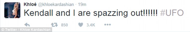'UFOs are real!!! Tripping out,' tweeted Khloe Kardashian. 'Kendall and I are spazzing out!!!#UFO,' she wrote just minutes later.