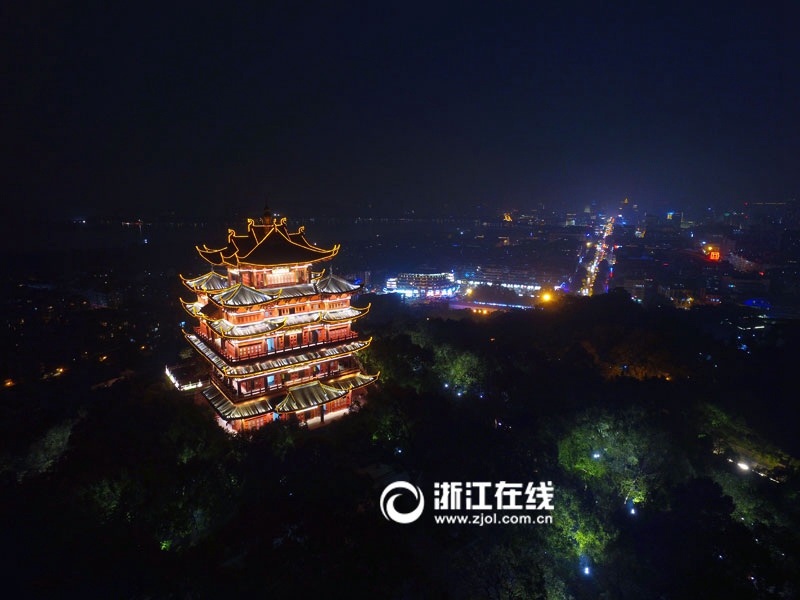 Chenghuang Pavilion is located on Wushan hill in Hangzhou old city area. The pavilion has six floors, on the top of the temple, people can enjoy an excellent view of the West Lake and southern Hangzhou.(Photo/Zjol.com.cn)