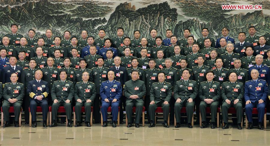 Chinese President Xi Jinping (C, front), who is also chairman of the Central Military Commission, poses for a group photo with delegates attending a meeting on reforming the armed forces in Beijing, capital of China. The meeting was held in Beijing from Nov. 24 to 26. (Xinhua/Li Gang)